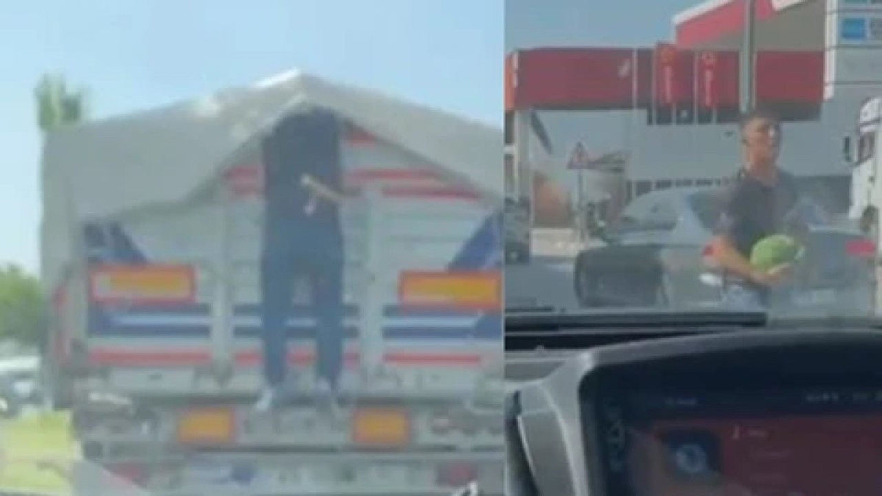 Olay, merkez Yüreğir ilçesi Karataş Bulvarı üzerindeki Regülatör Köprü Kavşağı’nda meydana geldi. İddiaya göre, cadde üzerindeki trafik ışıklarında duran araçların camlarını silerek para isteyen Sedat S., kırmızı ışıkta duran karpuz yüklü bir kamyona yöneldi. Branda örtüsünü açarak kamyon kasasına çıkan şüpheli, karpuzu alarak araçtan atladı. O anlar trafikteki bir vatandaş tarafından cep telefonu kamerasıyla kaydedildi. Görüntülerin sosyal medyada yayılması üzerine Yüreğir İlçe Emniyet Müdürlüğü ekipleri çalışma başlattı. Kimliği belirlenen Sedat S., kısa sürede yakalanarak gözaltına alındı. Şüphelinin işlemleri sürüyor