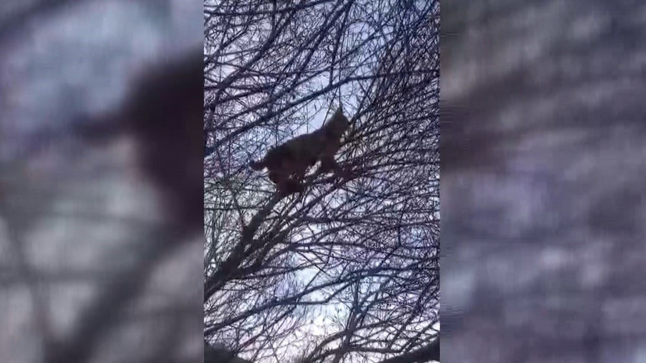 Bir süre ağaçta bekleyen vaşak, köpeklerin tehlikesini atlatınca inerek gözden kayboldu.