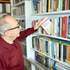 Kocaeli''nin Karamürsel ilçesinde evinin üst katını kütüphaneye çeviren emekli öğretmen ve yazar Mustafa Can (71), kitaplarına özenle bakıyor.