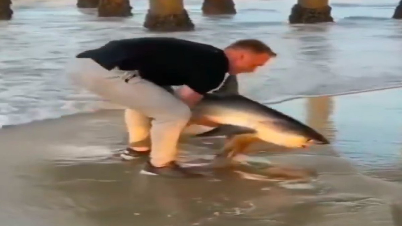 Bir adam, sahilde yürüyüş yaptığı sırada kıyıya vurmuş yavru köpek balığını fark etti. Hayvanın o şekilde ölmesine göz yummak istemeyen kahraman adam, köpek balığını kucakladığı gibi üstünün ıslanmasını umursamadan denizde yürüyerek balığı suya geri bıraktı. Bu anlar, çevredeki insanlar tarafından ilgiyle izlendi ve adamın cesareti ve duyarlılığı takdirle karşılandı. Sosyal medyada kısa süre olan görüntüler, yorum yağmuruna tutuldu.