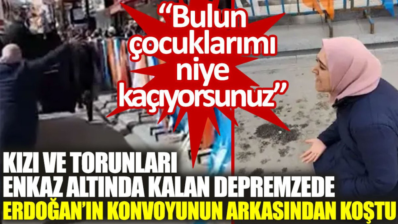 6 Şubat depremlerinde Hatay’da yıkılan Rönesans Rezidans’ta oturan kızı Tuğba Koşar ile torunları Mehmet Akif Koşar’ı ve Mustafa Kemal Koşar’ı kaybeden Suna Öztürk, konvoy geçerken Cumhurbaşkanı Erdoğan’a seslendi.