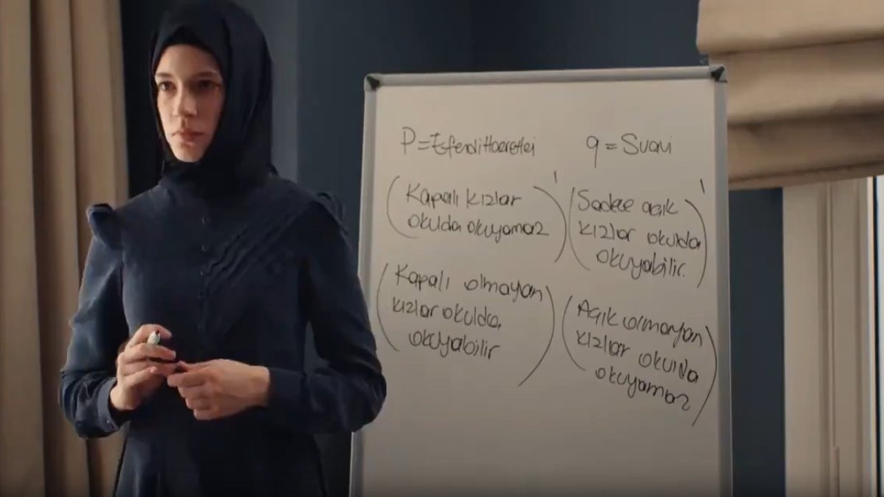 Beyaz tahtada Suavi’ye mantık önermesini konusunu anlatan Zeynep, kapalı kızların okutulmadığı zihniyete dikkat çekti. Daha sonra “Olan hep kızlara oluyor. Ne farkınız var? Aynısınız.” diyerek daha modern görünen Suavi’nin aslında tarikat şeyhiyle aynı zihniyette olduğunu ifade etti. Zeynep sahnenin ardından da odayı terk etti.