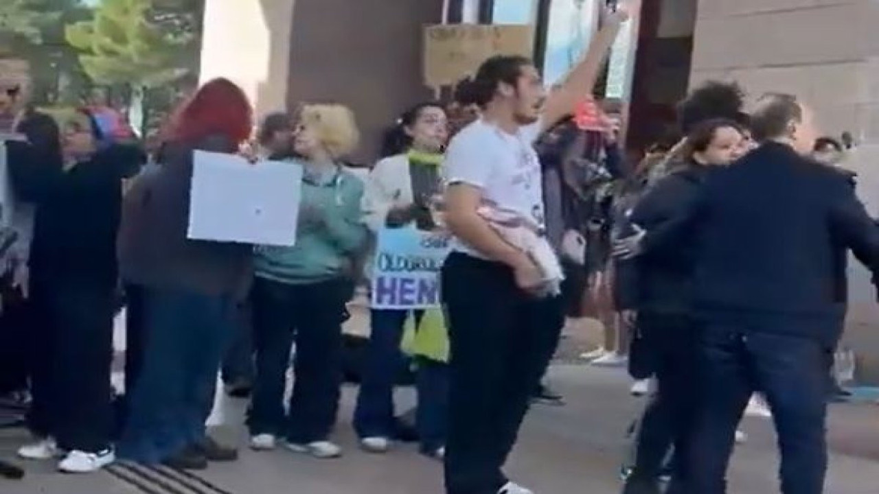 Üniversite güvenliği, bu sloganları atan gruba müdahale etmek yerine, onlara karşı tepki gösteren öğrencilere müdahale etti.