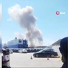 Patlamanın ardından çıkan yangını söndürmek için ekiplerin başlattığı çalışma devam ediyor.