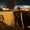 Ferdi Bektaş yönetimindeki bir güvenlik şirketine ait servis minibüsü, iddiaya göre sürücünün aniden önüne çıkan bir araca çarpmamak için manevra yapması sonucu bariyerlere çarparak devrildi.