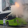 Otobüsün bir anda alev aldığını fark eden sürücü, aracını durdurarak yangına, yangın söndürme tüpüyle müdahale etti.