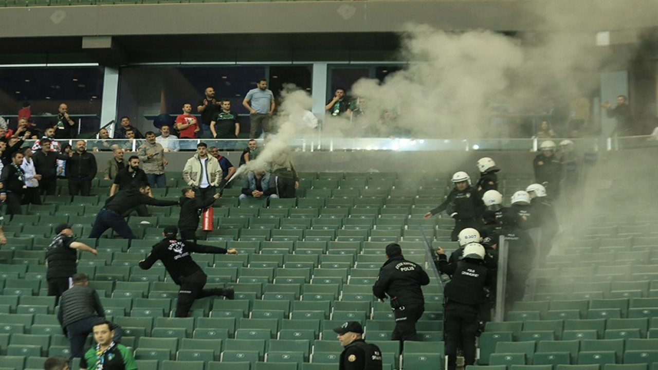 Polis taraftarlara müdahale ederken ortaya ilginç görüntüler çıktı.
