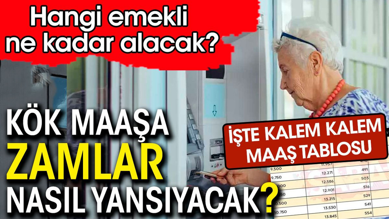 Emekli maaşı hangi aralıkta bulunan emeklinin kök aylığına zammın nasıl yansıyacağı da tablo tablo belli oldu. İşte kalem kalem kök maaş zamlı tablolar...