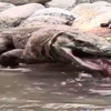 Komodo ejderlerinin güçlü mide asitleri sayesinde saniyeler içinde büyük bir et parçasını tüketebildiği biliniyor. Bu özelliği, avlarını hızla sindirme kabiliyetleriyle ünlüler. Sosyal medyada paylaşılan bir videoda, bir Komodo ejderi yakaladığı ahtapotu saniyeler içinde yediği görülüyor. Bu görüntüler, Komodo ejderlerinin avlarını nasıl hızla sindirdiklerini gösteriyor.