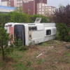 İscehisar Belediyesine ait bir midibüs, henüz belirlenemeyen bir şekilde şarampole devrildi.