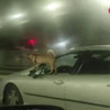 Ankara’da gece saatlerinde Sıhhiye Köprüsü üzerinde seyir halinde olan bir araçta bulunan köpek camdan çıkarak yolculuk yaptı.