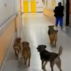 Başıboş sokak köpekleriyle ilgili paylaşılan bir videoda birden fazla köpeğin hastane koridorunda ilerlediği görülüyor.