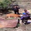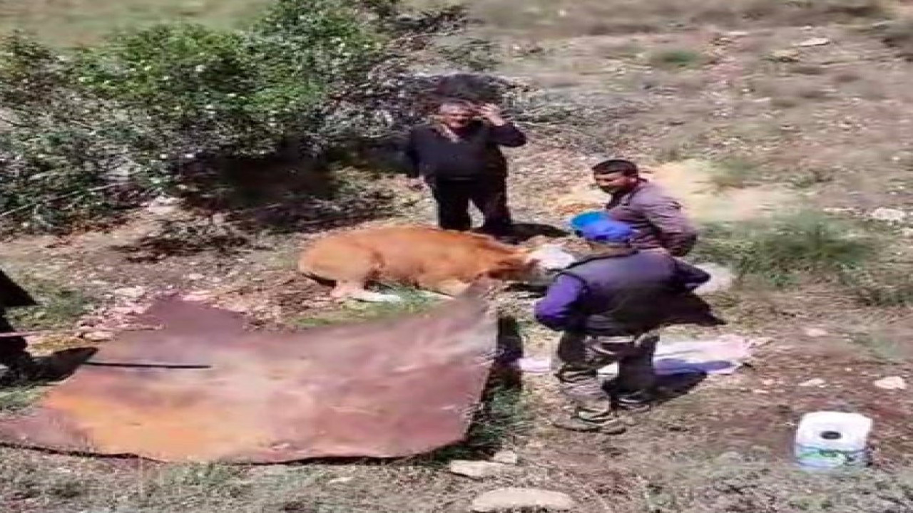 Yaklaşık 4 saat süren yoğun bir arama sonrasında, gebe inek dağlık alanda yorgunluktan bitkin bir halde bulundu. Köy sakinleri, hemen bir plan yaparak ineği kurtarmak için seferber oldular. Demir bir varili keserek sedye haline getiren köylüler, sedyenin 4 köşesine delikler açtılar ve buraya takacakları sopalar ve ip yardımıyla inek sedye üzerine taşındı.