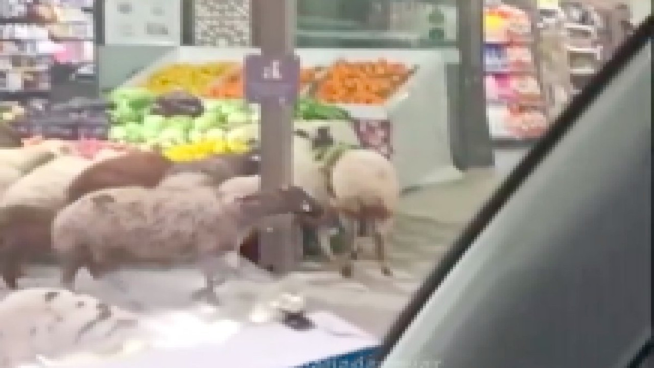 Adana'da bir zincir marketin dışında otlayan bir koyun sürüsü, marketin açıkta satılan sebze ve meyvelerini yiyerek büyük bir zarara neden oldu. O anlar sosyal medyada gündem oldu