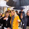 Onlarca polisin koruduğu Pervin Ersoy, bir arkadaşıyla birlikte neşeli bir şekilde yürürken, çantasını ve şemsiyesini kendisini korumakla görevlendirilen kadın polise taşıttı.