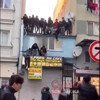 Görüntülerde sığınmacıların panik içinde çatıdan inmeye çalıştığı da görülüyor.