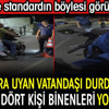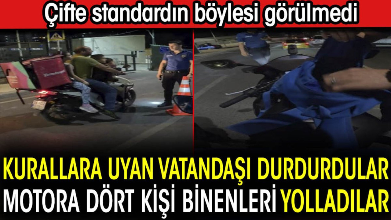 Bu esnada kasksız bir şekilde kurye motosikletine 3 çocuk ile binmiş bir adam, motoruyla kontrol noktasına doğru geldi. Polis ekipleriyle birkaç saniye konuşan motosiklet sürücüsü, kontrol noktasında durdurulmadan yoluna devam etti.