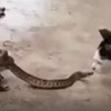 Hırçın yılan, ölmeden önceki son dakikalarında bile karşısındaki kediye saldırıya geçti. Hayvanların bu dakikaları sosyal medyada binlerce izlenme aldı.