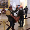 Bir Trump destekçisinin protestocuların Kongre binasını basmasının ardından kürsüyü taşıdığı fotoğraf tüm dünya basınına servis edildi. Çalınan kürsü