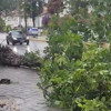 Kuvvetli rüzgar ilçede ağaçları da devirdi. Yol ortasına devrilen ağaç yolu trafiğe kapatırken, cadde üzerinde ilerleyen bir otomobil ağacın altında kalmaktan son anda kurtuldu.
