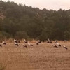 Demirci ilçesine bağlı kırsal Küçükoba ve Çandır Mahalleleri arasında yere inen leylekler burada çevrede bulunan vatandaşların kameralarına takıldı.