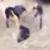 Amatör kameralarca kaydedilen görüntülerde, sel sularının arasında zorlukla ilerlemeye çalışan motosikletli bir kuryenin motordan düştüğü, sürüklendiği sırada çevredekiler tarafından kurtarıldığı görüldü.