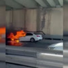 İtfaiye ekipleri, yangını kontrol altına almak için çalışırken, aracın ön kısmı tamamen yandı.