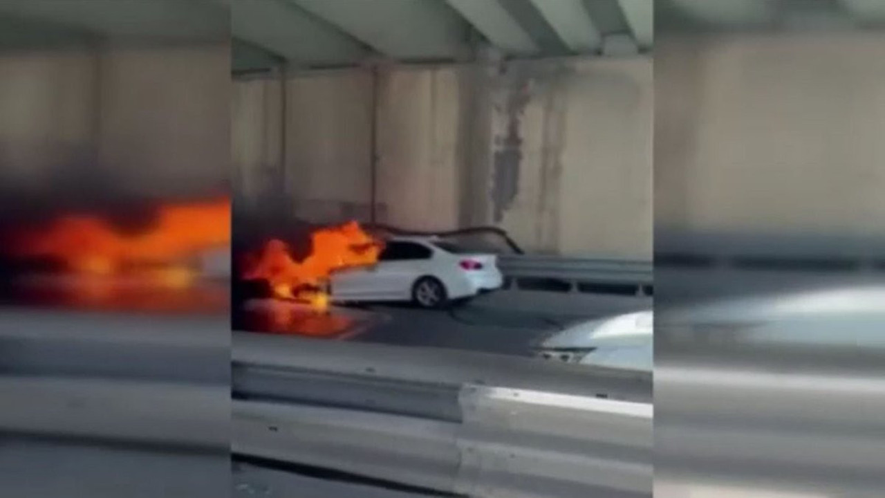 Yolda ilerleyen 34 MMC 653 plakalı BMW marka lüks otomobil, aniden başlayan yangınla alev alev yandı. Sürücü, aracı yol kenarında bırakıp kendini dışarı attı.