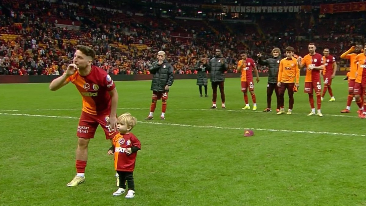 Öncelikle sahne Mertens'in minik oğlu Ciro'daydı. Tribünleri ayağa kaldıran minik Ciro'nun ardından Muslera da çocuklarıyla birlikte galibiyeti kutladı. Son olarak Davinson Sachez'in minik oğlu da biraz çekinse de üçlü şova katıldı. Bu anlar yoğun ilgi gördü.