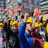 Baretleriyle yürüyüş yapan GMİS üyesi 50 madenciler, TFF'ye kırmızı kart göstererek Madenci Anıtı'na geldi. 2 bin kişinin katıldığı yürüyüş valilik binası önüne kadar sürerken 'TFF uyuma Ankara'da şike var. Büyükekşi duy bu sesi, Zonguldak'ın hakkı yendi' gibi sloganlar atılıp protestoda bulundular.