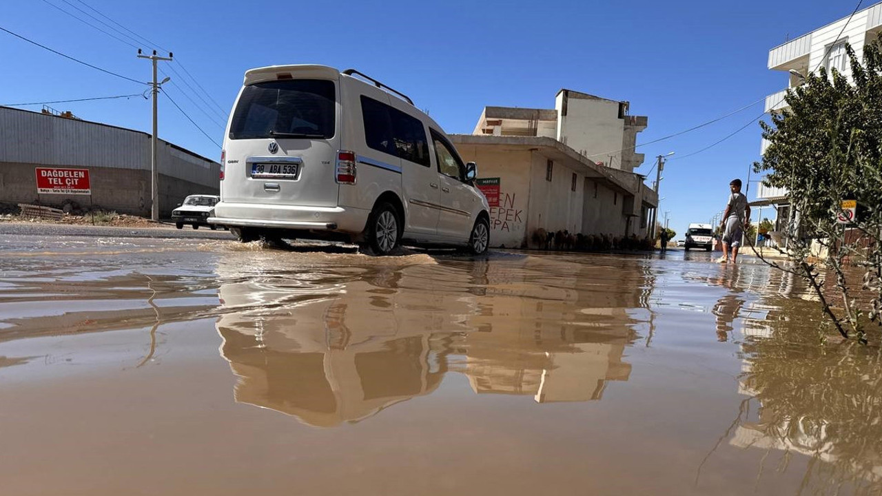Şanlıurfa'da tarlalardan akan tarımsal sulama suyu, caddeleri göle çevirdi.