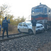 Yük treninin yaklaşık 200 metre önünde sürüklediği otomobilin sürücüsü Ucu ile yanındaki Öner Faruk Kaya yaralandı.