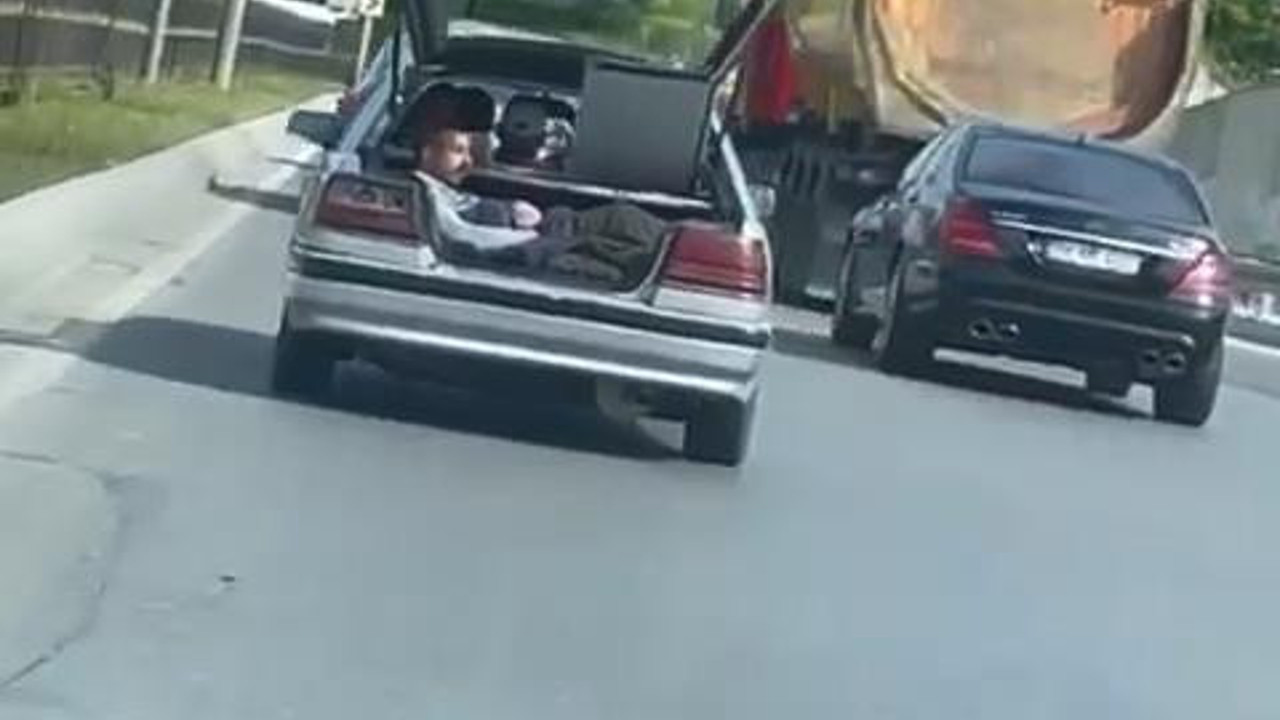 İstanbul Beykoz’da otomobil içinde taşınan malzemeler nedeniyle yer kalmayınca, bir kişi bagajda yolculuk yaptı. Tehlikeli yolculuk, trafikteki başka birinin cep telefonu kamerasına yansıdı.