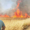 Yangın, akşam saatlerinde Turgutlu ilçesi Erbiller Sanayi Sitesi'nin üst kısmındaki bir buğday tarlasında yangın çıktı.