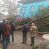Marketin önünde park halindeki otomobilde maddi hasar meydana gelirken, tonlarca ağırlığındaki ağaç, Alaşehir Belediyesi Park Bahçeler Müdürlüğü ekipleri tarafından motorlu testere ile kesildi.