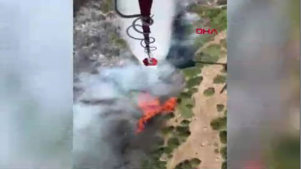 Yangını söndürme çalışmalarına, İzmir Orman Bölge Müdürlüğü'nden 4 uçak, 4 helikopter, 15 arazöz, 7 su ikmal aracı ve 1 dozer katılıyor.