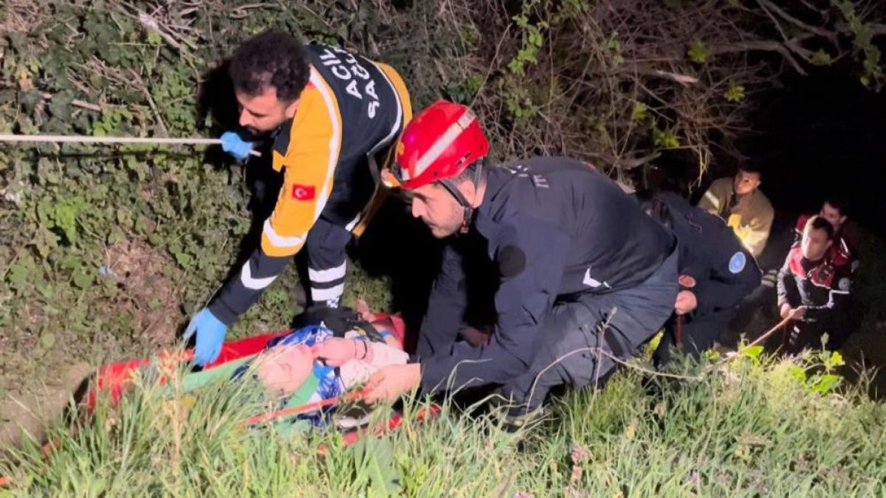 Yaklaşık 7 metre yükseklikten düşen Sibel İ., itfaiye ekiplerince kurtarıldı.