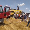Alınan bilgilere göre, saat 11.00 sularında Kızıltepe ilçesine bağlı Küçükboğaziye köyünde buğday tarlasında çalışan biçerdöverin arka kısmında aniden yangın çıktı.