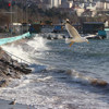 Rüzgar nedeniyle denize açılamayan balıkçılar, limanda ağlarını onarıyor.