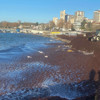 İstanbul''da etkili olan lodos nedeniyle Kadıköy Caddebostan sahilini kırmızı yosunlar kapladı. Sahile vuran dev dalgalar nedeniyle kırmızı renkli yosunlar sahil ve kayalıkları kapladı. İBB ekipleri. kamyonlar dolusu kırmızı yosun toplandı.