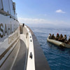 Yunanistan sahil güvenlik unsurlarınca Türk Karasularına geri itilen lastik bot içerisindeki 16 düzensiz göçmen kurtarıldı. (İHA)