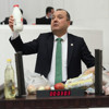 CHP Tekirdağ Milletvekili İlhami Özcan Aygun, TBMM Genel Kurulu’nda devam eden Cumhurbaşkanlığı bütçesine ilişkin görüşmelerde kürsüye sıvı yağ, yumurta, soğan, mango ve tavuğun olduğu gıdalarla çıktı.