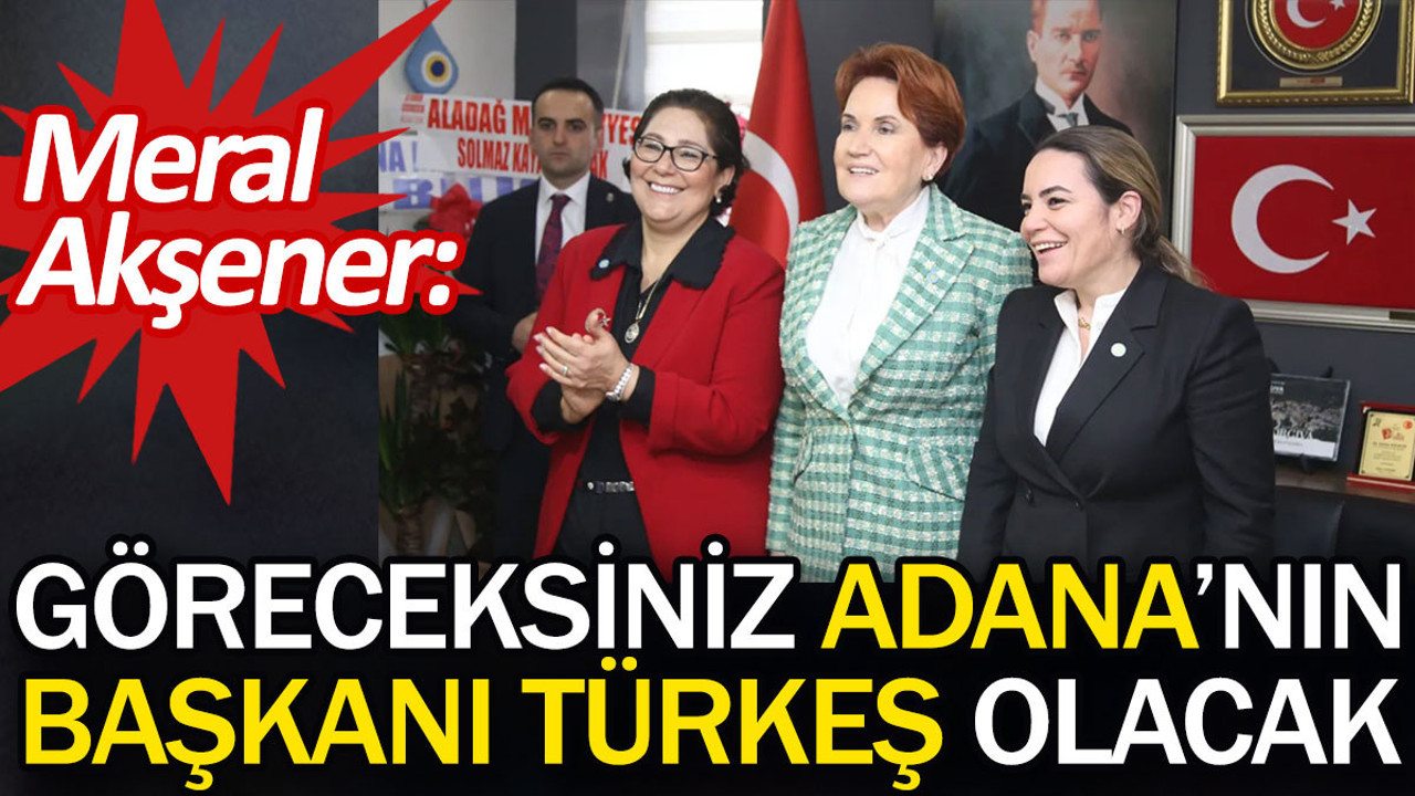Akşener, İl Başkanlığında İYİ Parti Adana Milletvekili Ayyüce Türkeş Taş ve İYİ Parti Adana İl Başkanı Azime Kocacık’ın arasına oturarak partisinin Adana Büyükşehir Belediye Başkanı adayı duyurdu.