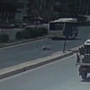 Öte yandan kaza anı, çevredeki iş yerinin güvenlik kamerasına yansıdı. (AA)