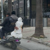 Görüntülerde cadde üzerinde giden mobiletin sürücünün arkasında oturan vatandaşın, ellerini ters şekilde arkaya atarak yaklaşık bir metre boyundaki kardan adama sıkıca sarıldığı anlar yer aldı.