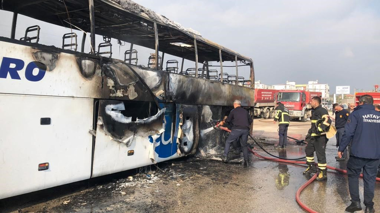 Antakya İskenderun yolu Anayazı Mahallesi mevkiinde seyir halinde olan yolcu otobüsü yanmaya başladı. Olay yerine itfaiye ekipleri sevk edildi ve yanan otobüs söndürüldü. Otobüsün içindeki 14 yolcu son anda kurtuldu. Otobüsteki yolculardan Kadir Soylu, otobüs seyir halindeyken muavinin uyarısıyla aşağı indiklerini söyleyerek şunları iletti: “Daha sonra otobüsten dumanlar çıkmaya başladı. Bir süre sonra da otobüs alev topuna döndü. Otobüsün elektrik aksamındaki sorundan dolayı yandığını söylediler."