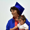KKÜ Mavi Salon''da düzenlenen diploma törenine ailesiyle katılan Çanga, mezuniyet belgesini 9 aylık torunuyla aldı.