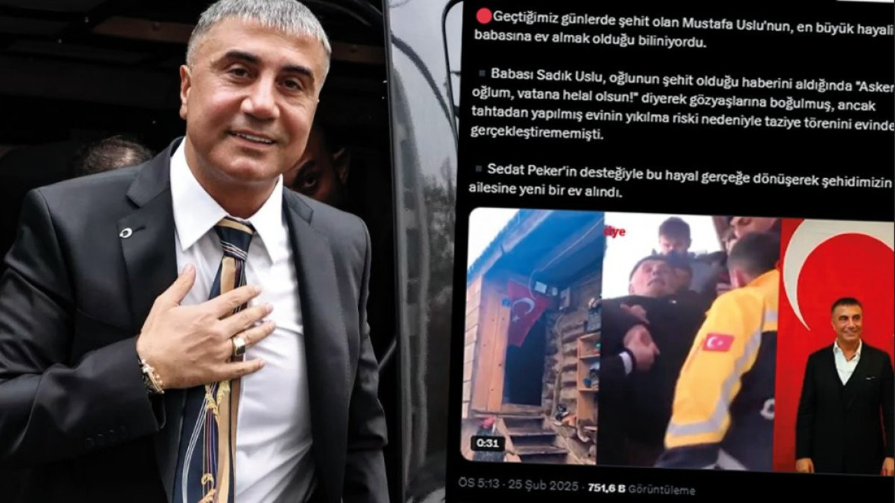 24 yaşındaki Piyade Sözleşmeli Er Mustafa Uslu, 20 Ocak’ta teröristlerle girdiği çatışmada şehit olmuş, şehidin cenazesi önceki gün Çorum’da toprağa verilmişti. Sedat Peker ise geçtiğimiz günlerde şehit olan ve en büyük hayali babasına ev almak olan Mustafa Uslu’nun babasına ev aldığı ortaya çıktı. MHP Genel Başkan Yardımcısı İzzet Ulvi Yönter ise Peker’in ev aldığına dair yapılan haberi kendi sayfasından paylaştı.
