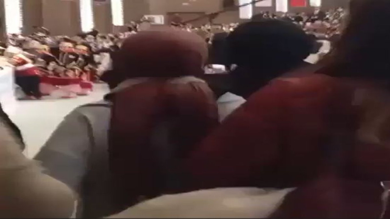 Tekin'in salonda bulunan korumaları öğretmenlere müdahale etti. O anlar ise cep telefonu kameralarına yansıdı.