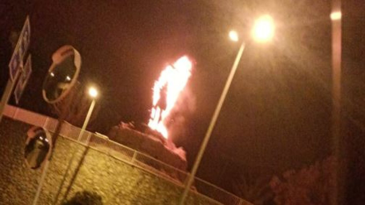 Denizli’nin Tavas ilçesi girişinde bulunan Milli Mücadele kahramanı Köpekçi Nuri Efe heykeli kundaklama nedeniyle alevlere teslim oldu. İhbar üzerine bölgeye sevk edilen itfaiye ekipleri, alevleri kontrol altına alsa da polyester ve cam karışımı olan heykel, çıkan yangın sonucu büyük oranda zarar gördü.